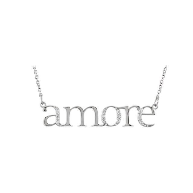 Natural 0.09 CTW Diamond "Amore" Expression Pendant Necklace 18KT White Gold