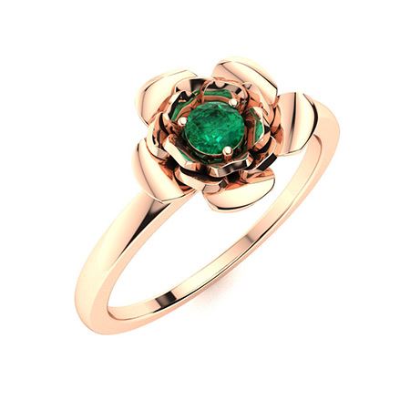 Natural 0.11 CTW Emerald Solitaire Ring 14K Rose Gold