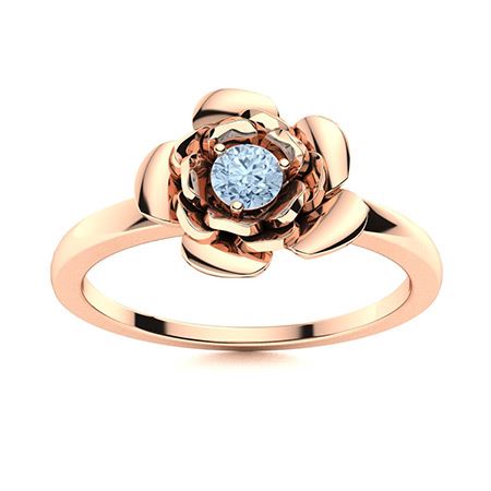 Natural 0.12 CTW Aquamarine Solitaire Ring 18K Rose Gold
