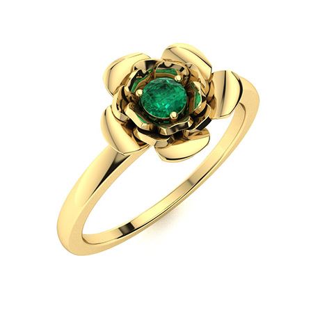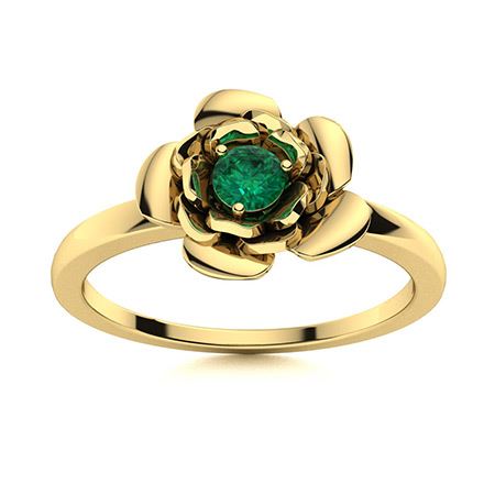 Natural 0.12 CTW Emerald Solitaire Ring 18K Yellow Gold
