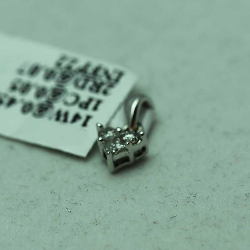 Item details: DIAMOND: 1 Princess cut White Diamond @ 0.05ct and 2 Round cut White Diamond @ 0.07ct------METAL: 14K White Gold---Metal weight 0.5 grams---SKU: 251860C --- Consignor: RC Fine Jewelers --- Availability: Ready to Ship