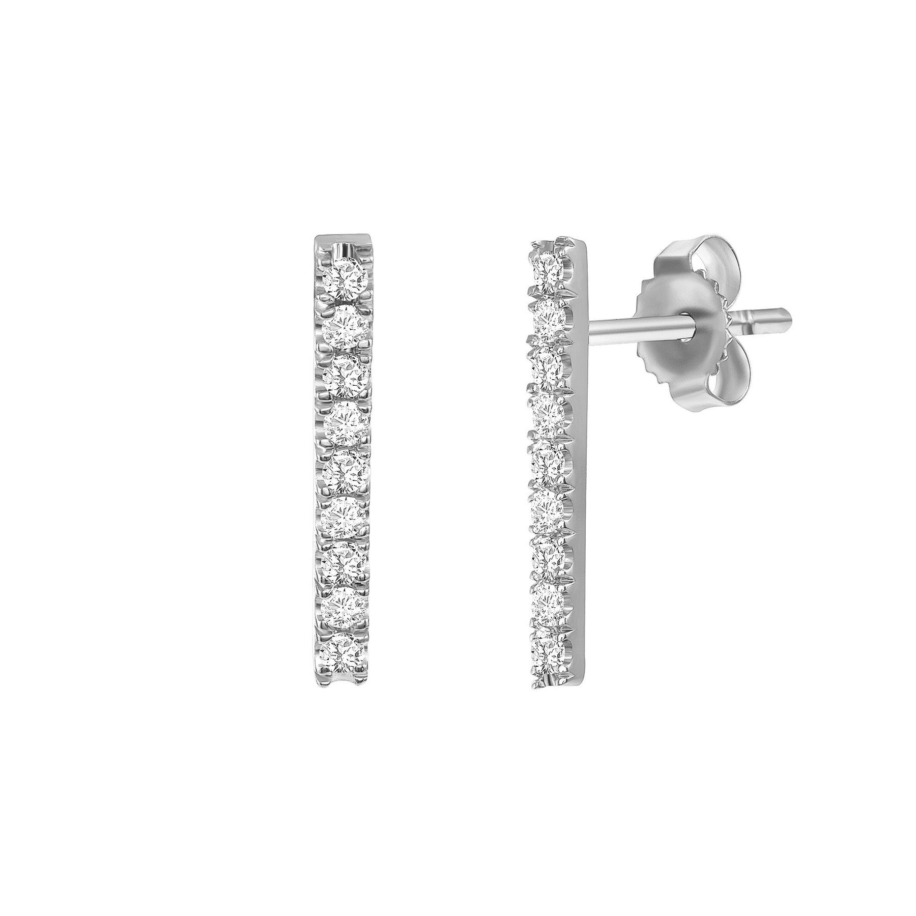 Natural 0.17 CTW Nine Stone Bar Earrings 14KT White Gold