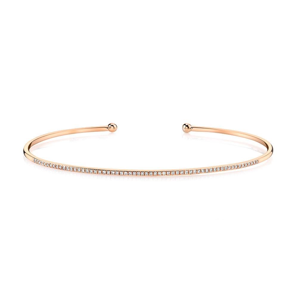 Natural 0.19 CTW Be Brave Bangle Cuff Bracelet 18KT Rose Gold
