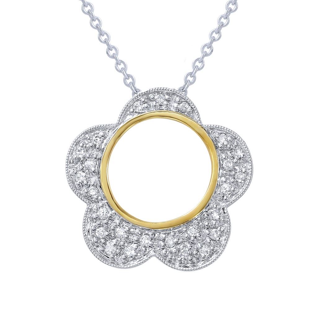 REF-45N2Y ---- Natural 0.19 CTW Diamond Necklace 14K Two Tone Yellow Gold
