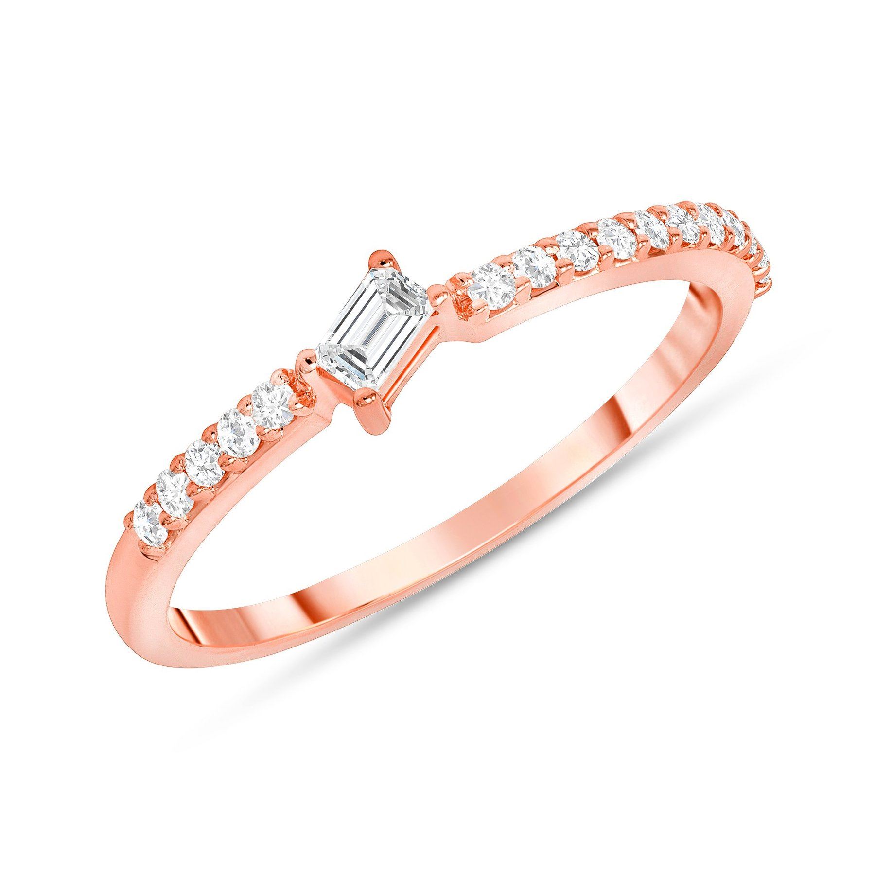 Natural 0.22 CTW Tilted Baguette Diamond Ring 18KT Rose Gold