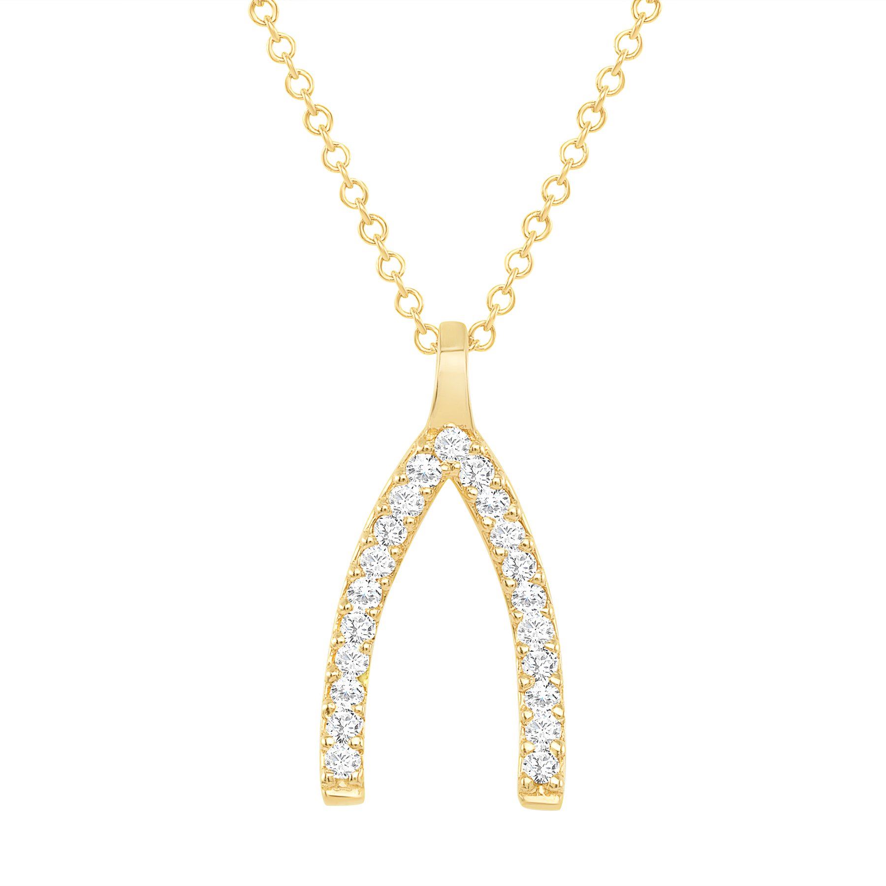 Natural 0.22 CTW Wishbone Diamond Necklace 18KT Yellow Gold