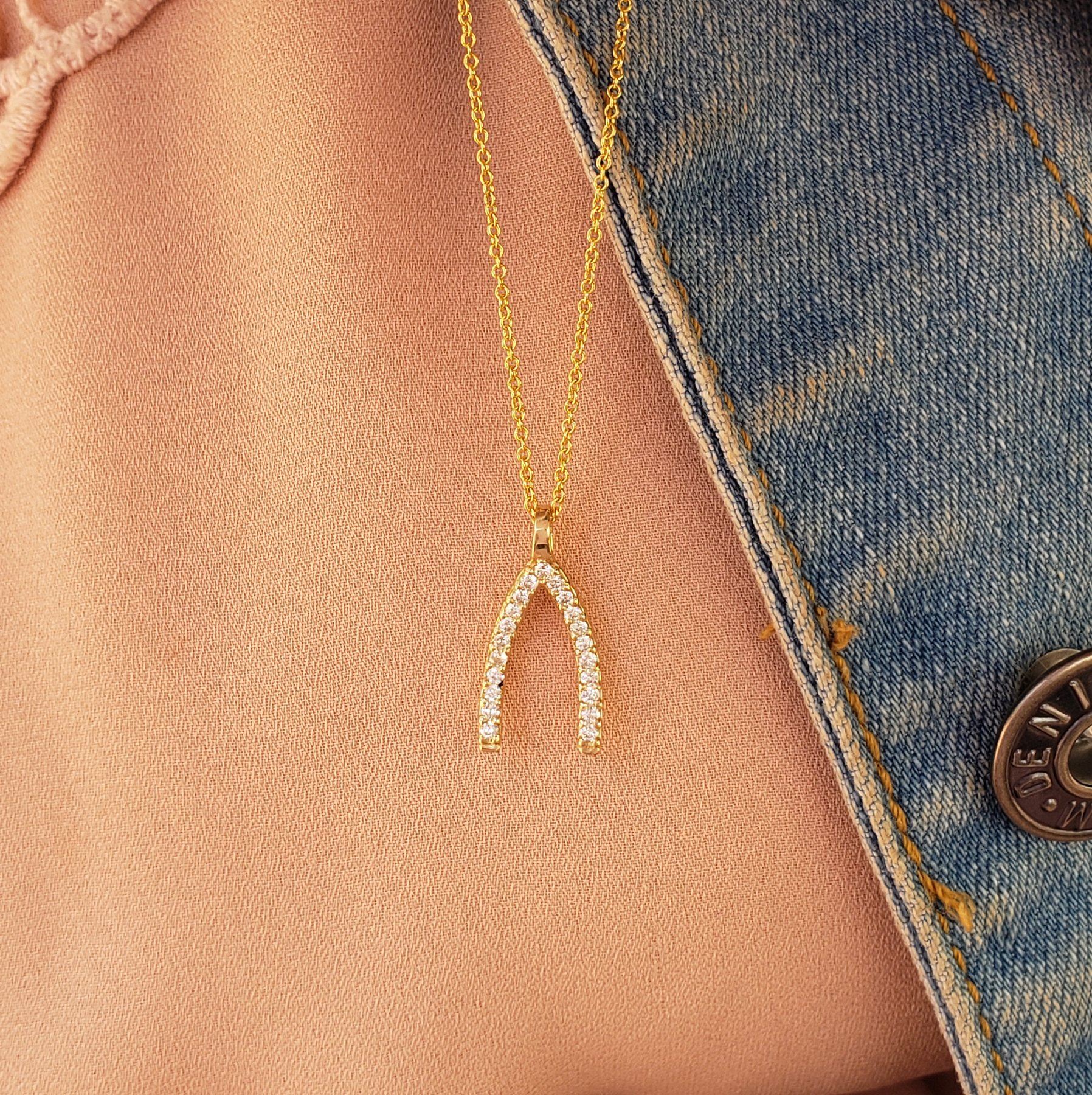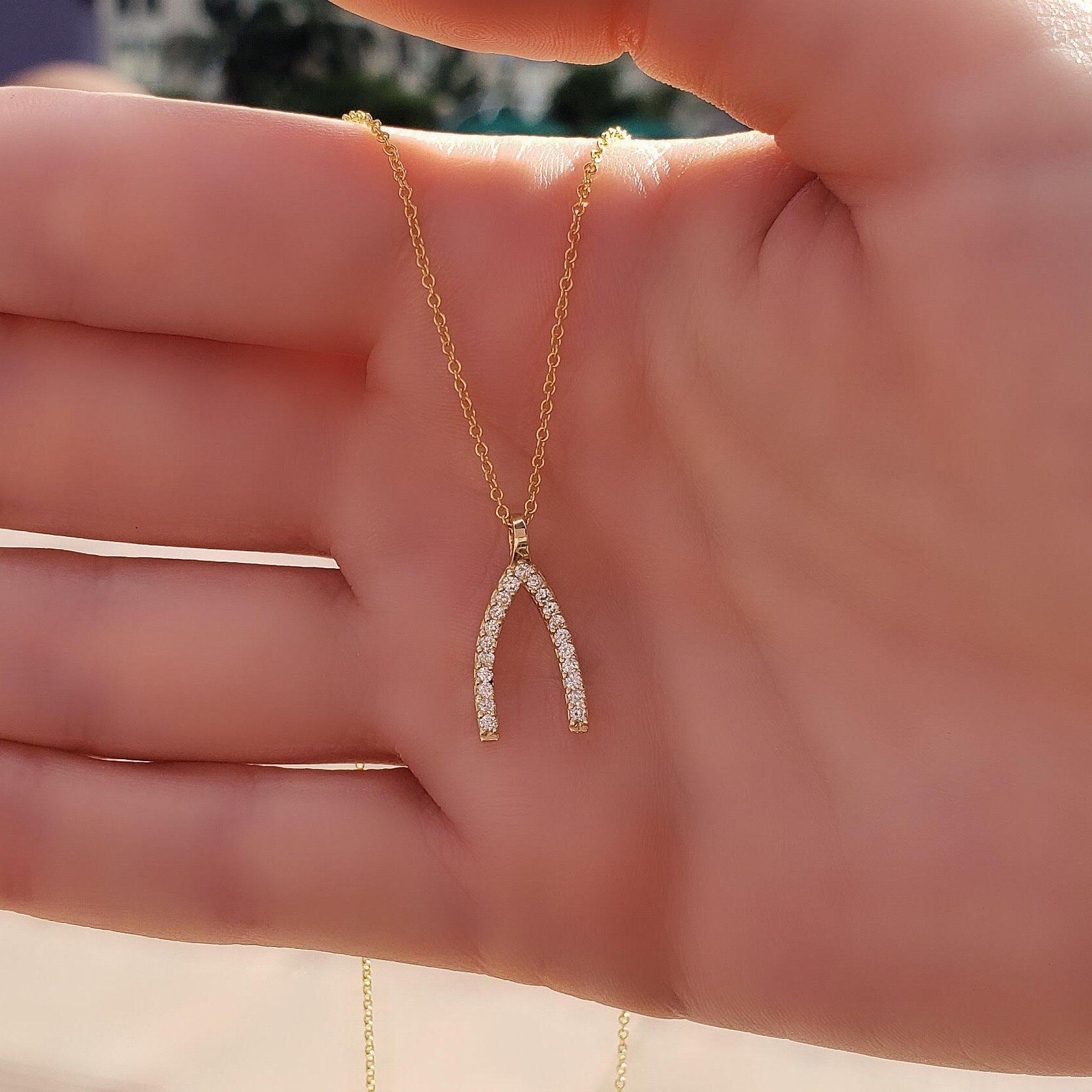 Natural 0.22 CTW Wishbone Diamond Necklace 18KT Yellow Gold