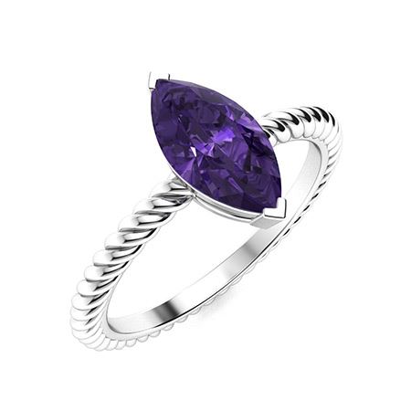 Natural 0.27 CTW Amethyst Solitaire Ring 18K White Gold