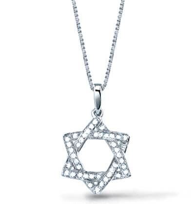 Natural 0.27 CTW Pave Set Diamond Star of David Pendant With Chain 14KT White Gold