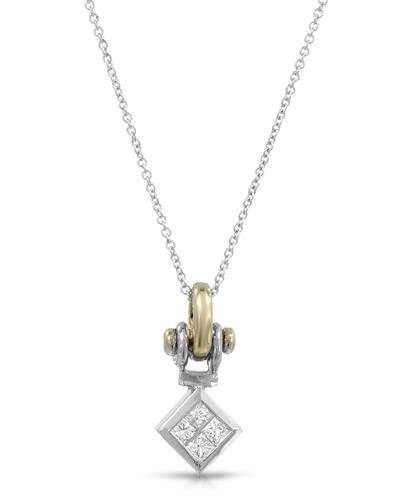 REF-67X5T ---- Natural 0.29 CTW Princess Diamond Necklace 18K Two Tone Yellow Gold