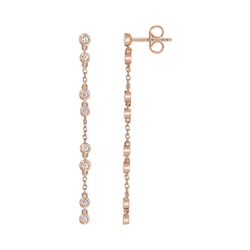 Natural 0.35 CTW Bezel Diamond Train Dangle Earrings 14KT Rose Gold