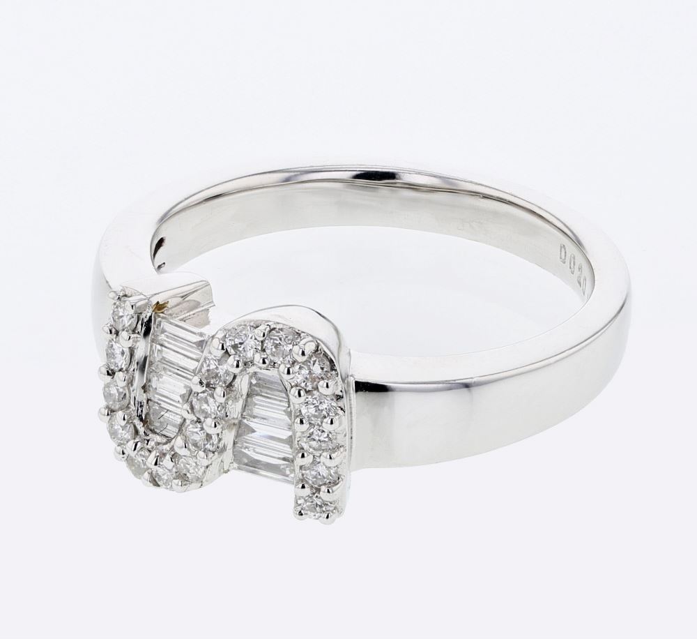 REF-85N5Y ---- Natural 0.38 CTW Diamond & Baguette Ring 18K White Gold