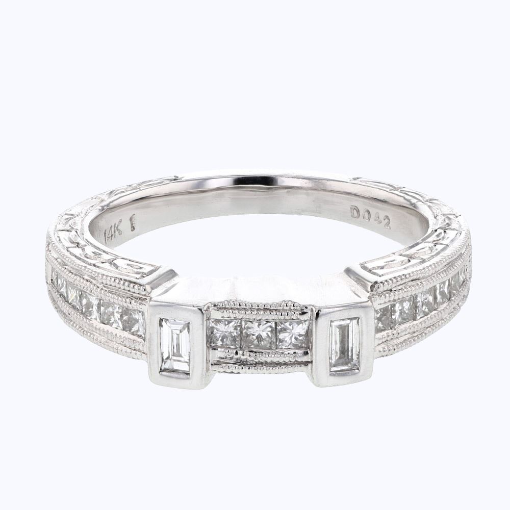 REF-80Y3N ---- Natural 0.42 CTW Baguette & Princess Diamond Band Ring 14K White Gold