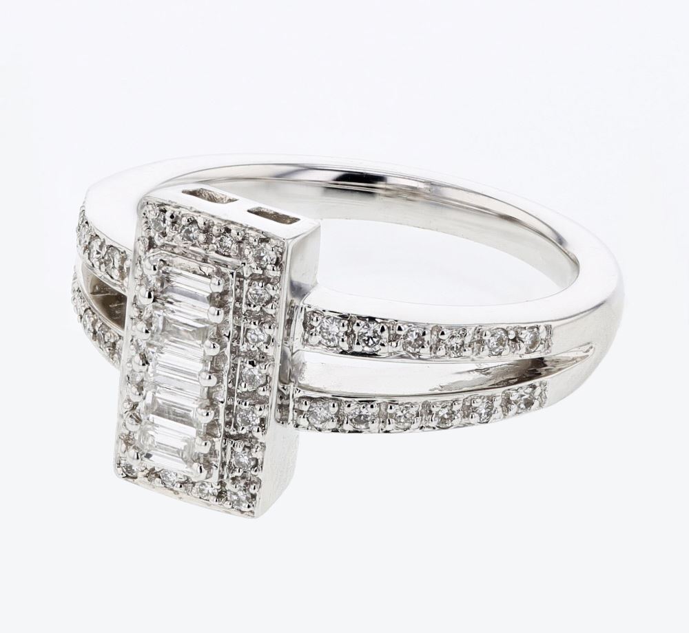 REF-93W6H ---- Natural 0.46 CTW Baguette & Diamond Ring 14K White Gold
