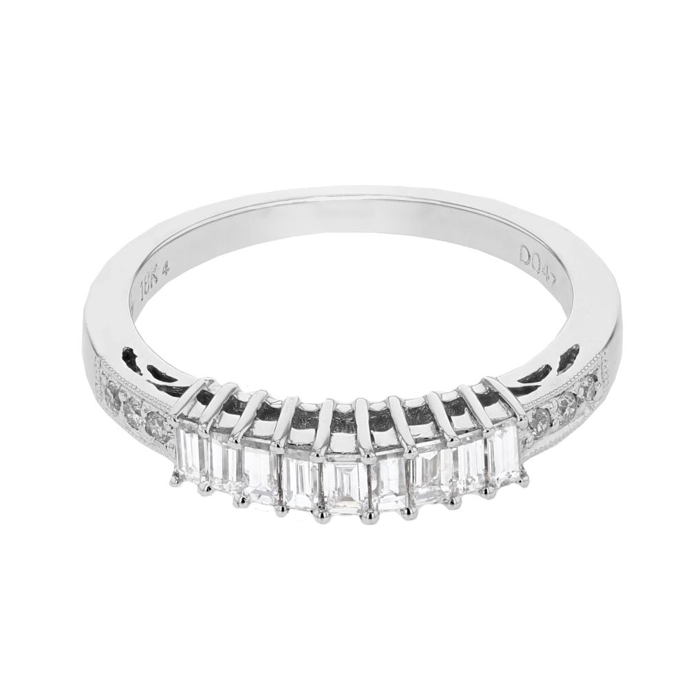 REF-71K3R ---- Natural 0.47 CTW Diamond & Baguette Ring 18K White Gold
