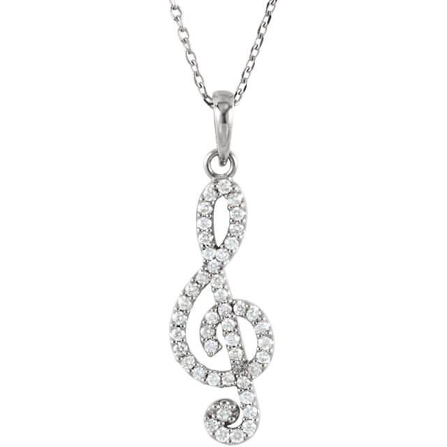 Natural 0.47 CTW Diamond Petite Treble Clef Expression Pendant Necklace 18KT White Gold
