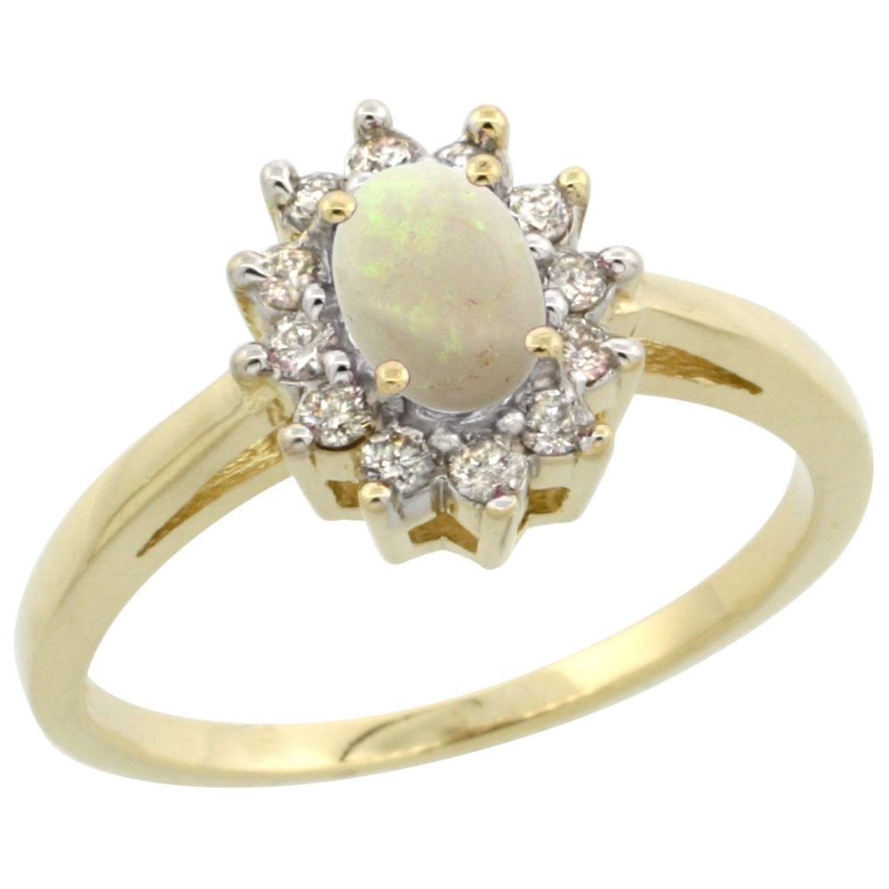 REF-38A8V ---- SKU:SC-CY920103 ---- Manufacturer's Suggested Retail Price - $1200.00 ---- Natural 0.47 ctw Opal & Diamond Engagement Ring 10K Yellow Gold