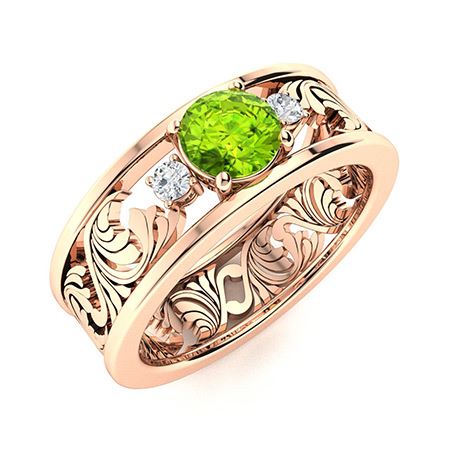 Natural 0.48 CTW Peridot & Diamond Engagement Ring 18K Rose Gold