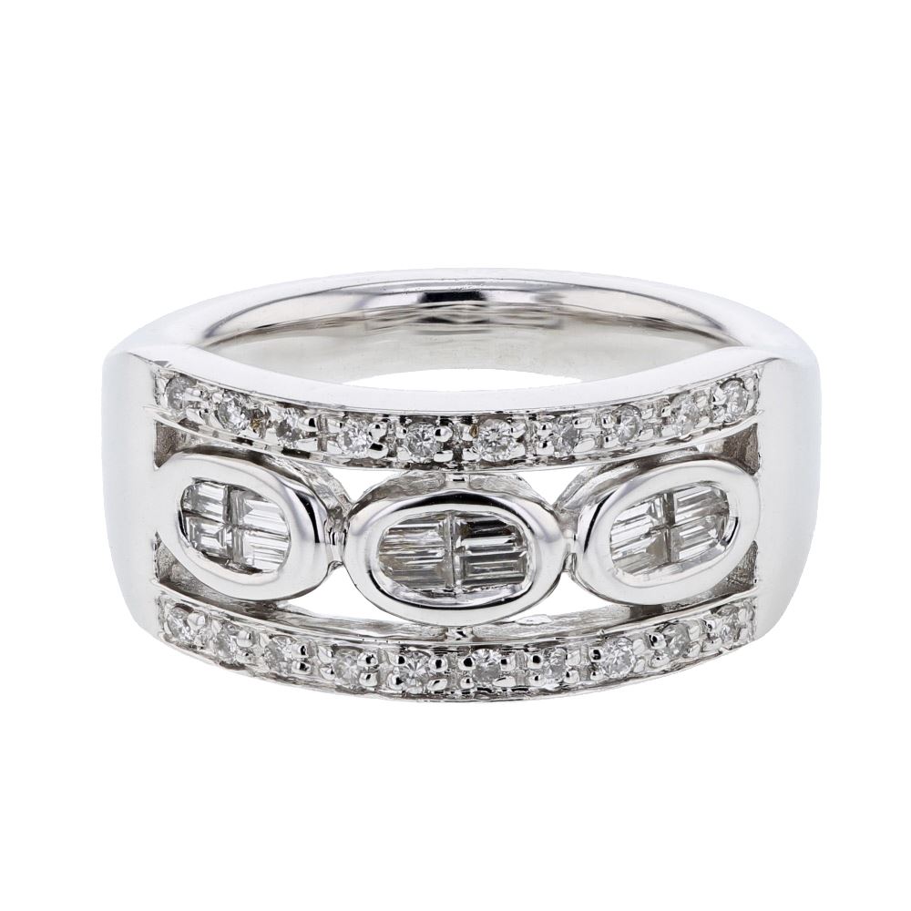 REF-151F2M ---- Natural 0.49 CTW Baguette & Diamond Ring 18K White Gold