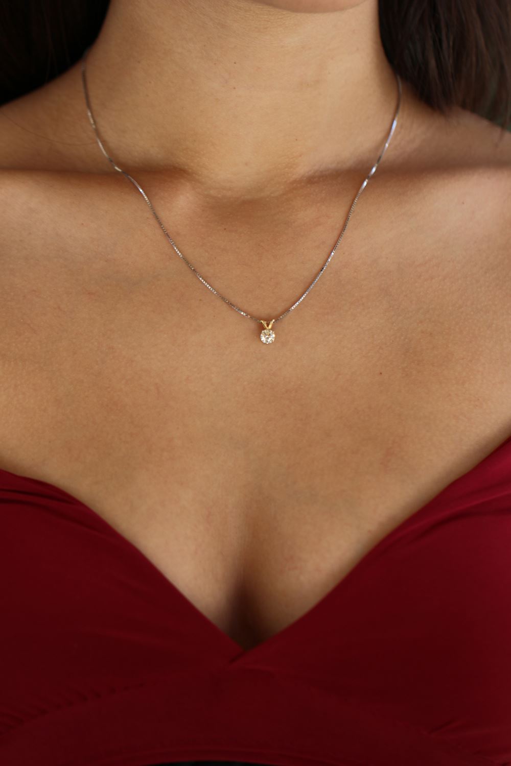 REF-72N6A - SKU: PN80013 ---- Natural 0.50 ctw Diamond VS2-J Solitaire Necklace 14K 2-Tone Gold
