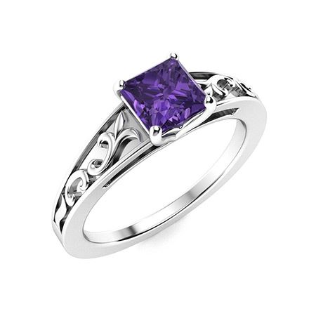 Natural 0.51 CTW Amethyst Solitaire Ring 14K White Gold