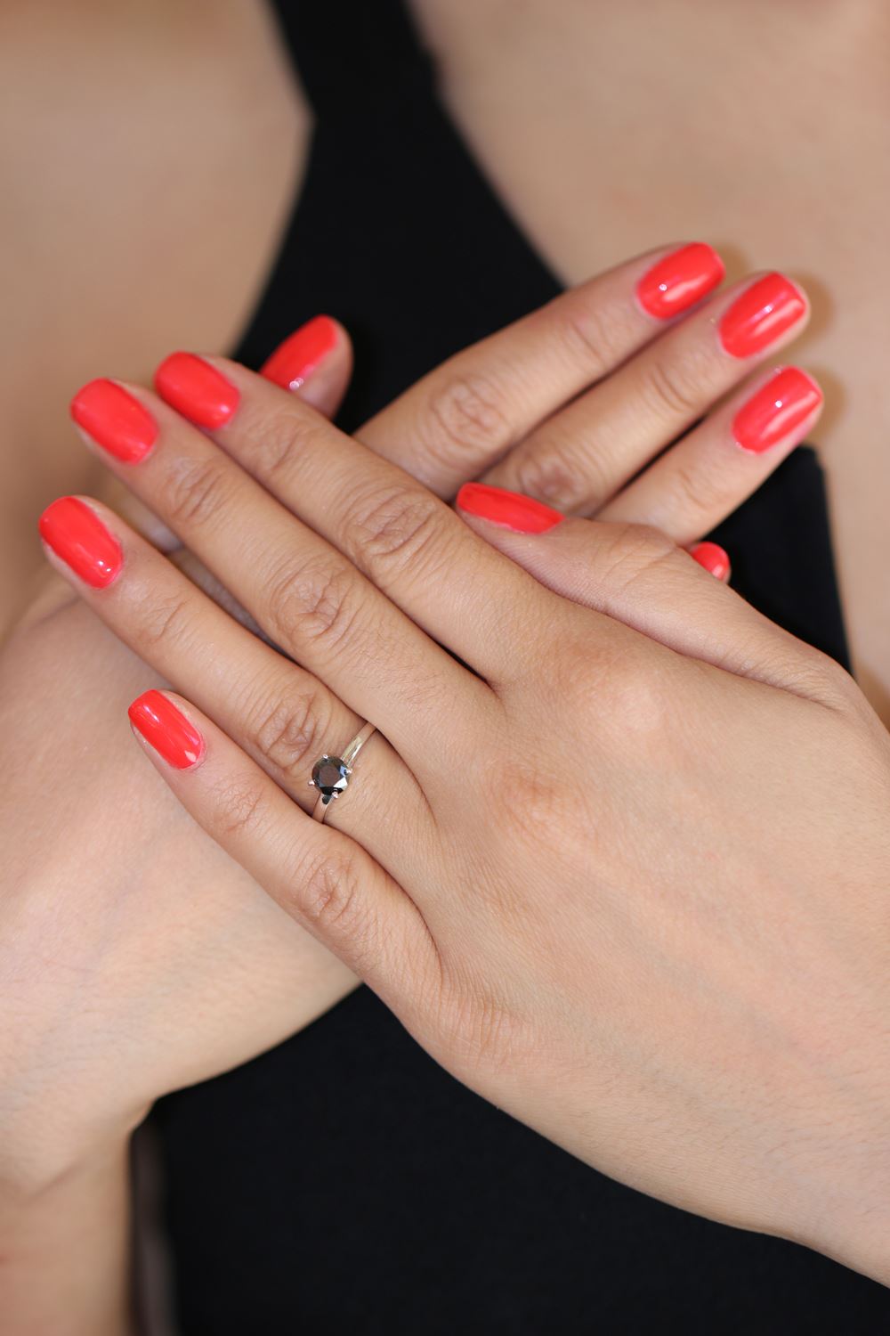 REF-22A6X - SKU: RG80011 ---- Natural 0.55 ctw Black Diamond Solitaire Ring 14K White Gold