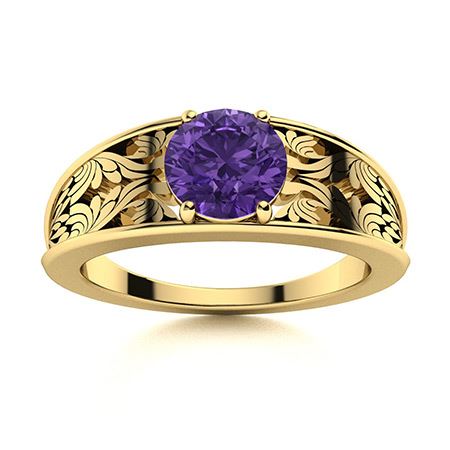 Natural 0.61 CTW Amethyst Solitaire Ring 14K Yellow Gold