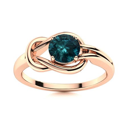 Natural 0.61 CTW Blue Diamond Solitaire Ring 14K Rose Gold