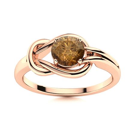 Natural 0.61 CTW Brown Diamond Solitaire Ring 14K Rose Gold