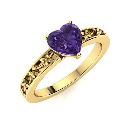 Natural 0.65 CTW Amethyst Solitaire Ring 14K Yellow Gold