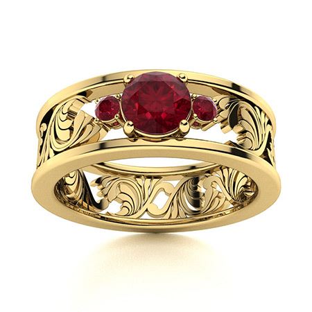 Natural 0.65 CTW Ruby & Diamond Engagement Ring 18K Yellow Gold