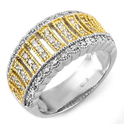Diamond: 57 Round cut @ 0.65 ctw---- Clarity: SI-I---- Color: H-K----Metal Purity & Color : 10K Gold-Multi tone----Gold weight: 7.60 grams----Ring size (US): 7----Dimension: Approx. 3/8 x 3/16----Consignor: World Jewelry Outlet----Delivery: Within 10 business days