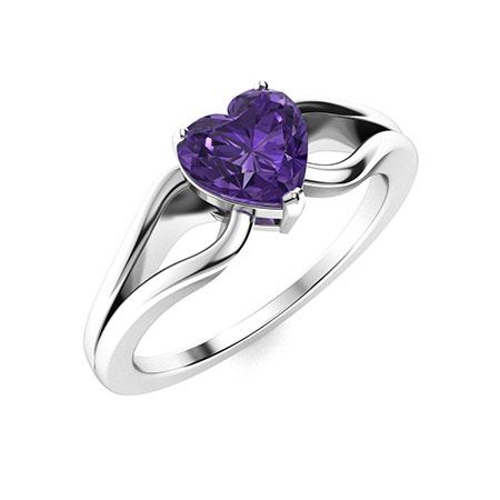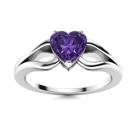 Natural 0.66 CTW Amethyst Solitaire Ring 18K White Gold