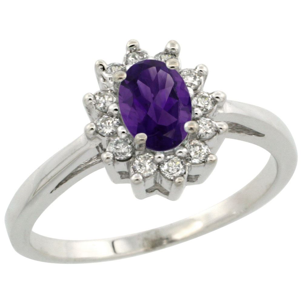 REF-48H6W ---- SKU:SC-CW401103 ---- Manufacturer's Suggested Retail Price - $1500.00 ---- Natural 0.67 ctw Amethyst & Diamond Engagement Ring 14K White Gold