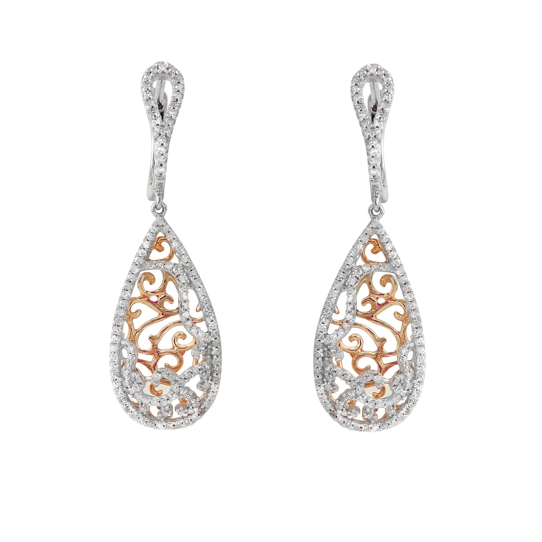 REF-69F3M ---- Natural 0.70 CTW Diamond Earrings 14K Two Tone Rose Gold