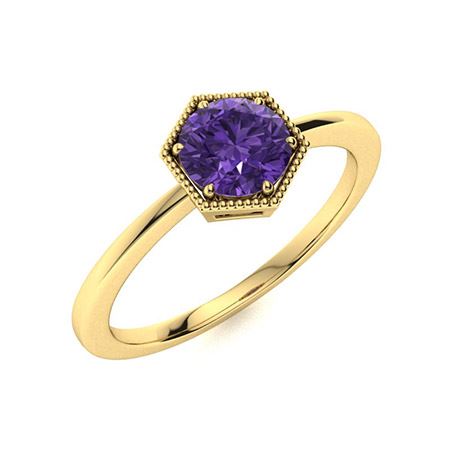Natural 0.71 CTW Amethyst Solitaire Ring 14K Yellow Gold