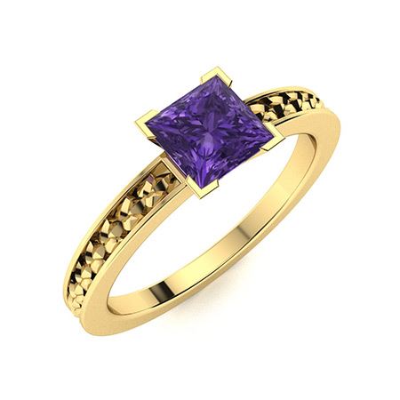 Natural 0.72 CTW Amethyst Solitaire Ring 18K Yellow Gold