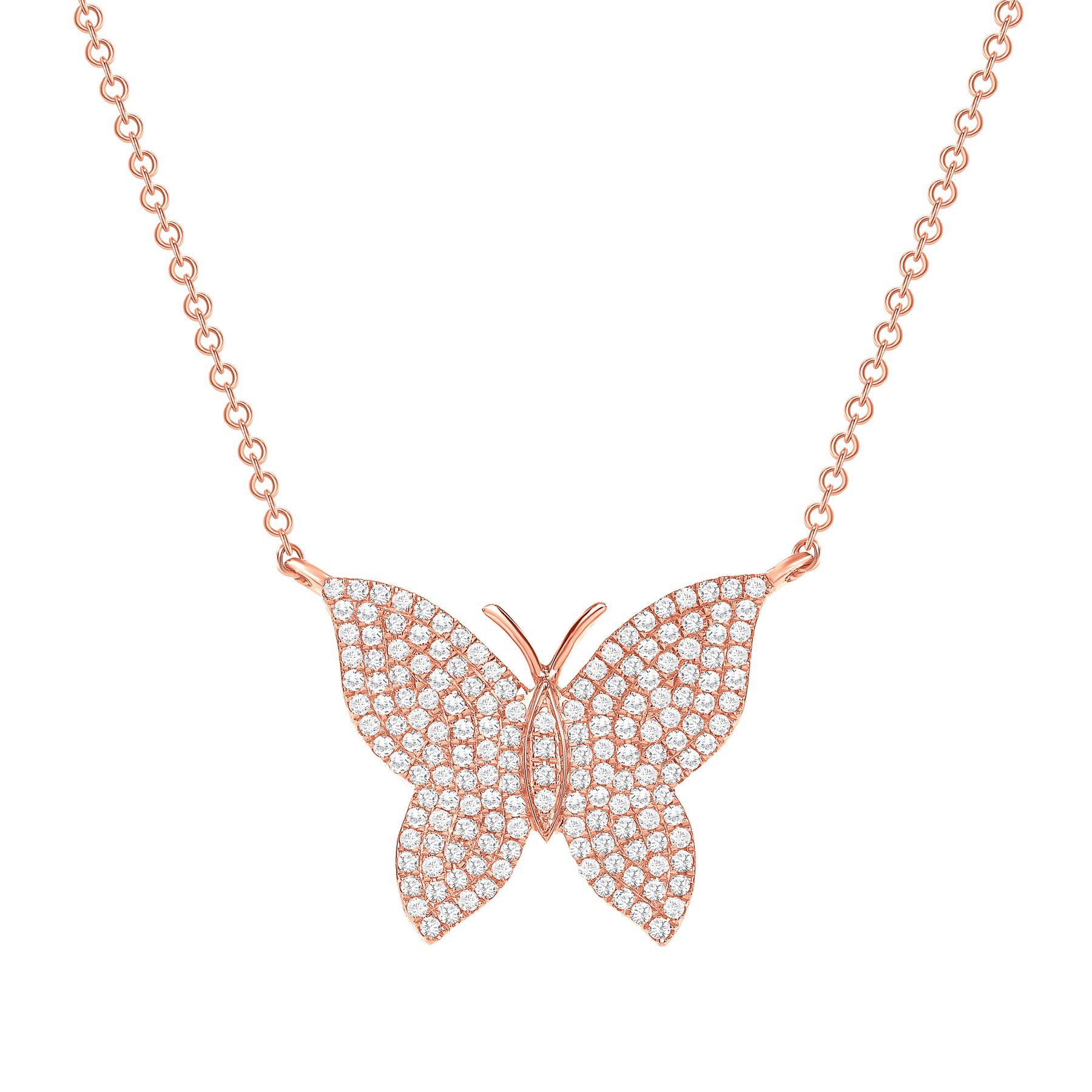 Natural 0.72 CTW Butterfly Diamond Necklace 18KT Rose Gold