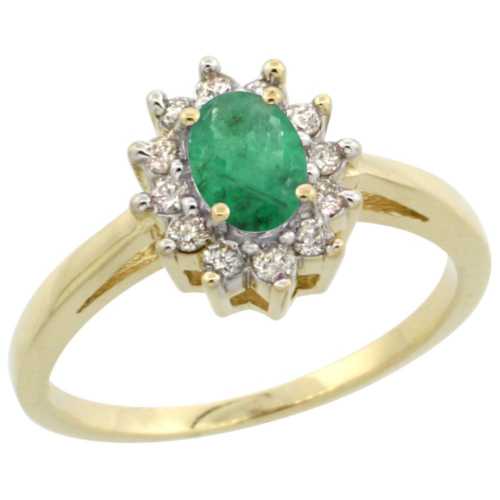 REF-42W2K ---- SKU:SC-CY952103 ---- Manufacturer's Suggested Retail Price - $1300.00 ---- Natural 0.72 ctw Emerald & Diamond Engagement Ring 10K Yellow Gold