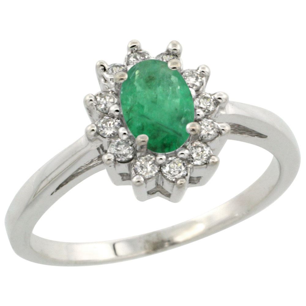 REF-49V7F ---- Manufacturer's Suggested Retail Price - $1500.00 ---- Natural 0.72 ctw Emerald & Diamond Engagement Ring 14K White Gold