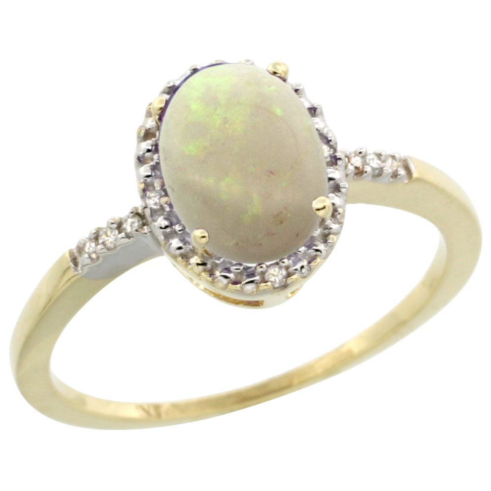 REF-16A8V ---- SKU:SC-CY920113 ---- Manufacturer's Suggested Retail Price - $600.00 ---- Natural 0.73 ctw Opal & Diamond Engagement Ring 10K Yellow Gold