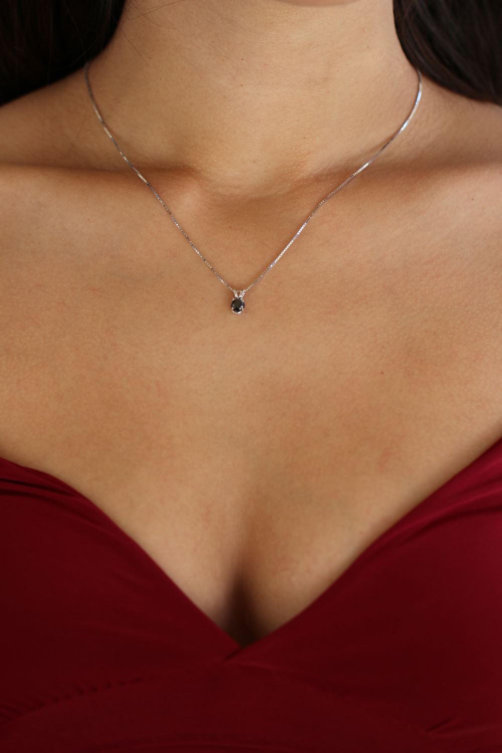 REF-30Z8R - SKU: PN80012 ---- Natural 0.74 ctw Black Diamond Solitaire Necklace 14K White Gold
