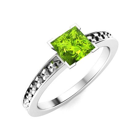 Natural 0.76 CTW Peridot Solitaire Ring 14K White Gold