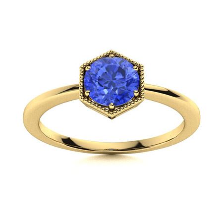 Natural 0.77 CTW Ceylon Sapphire Solitaire Ring 18K Yellow Gold