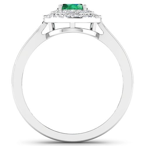 REF-37H9M - Natural 0.78 CTW Zambian Emerald & Diamond Ring 14K White Gold - REF-37H9M