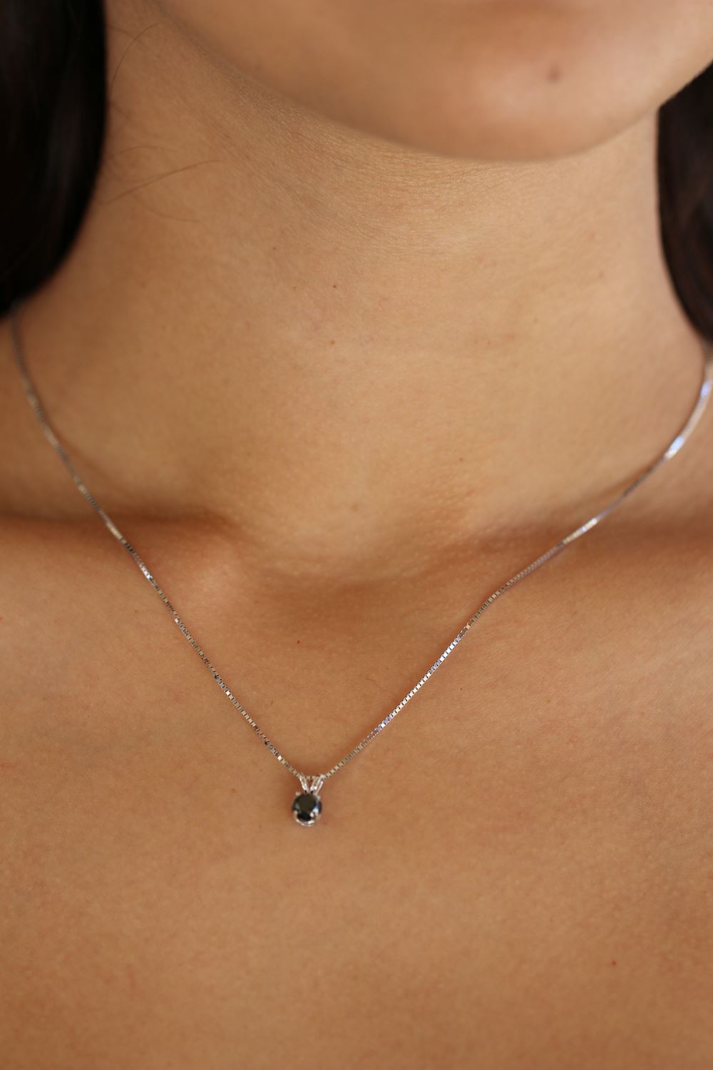 REF-33X6Y - SKU: PN80012 ---- Natural 0.79 ctw Black Diamond Solitaire Necklace 14K White Gold