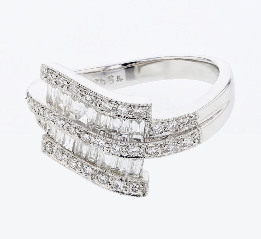 REF-118T8X ---- Natural 0.80 CTW Baguette & Diamond Ring 18K White Gold