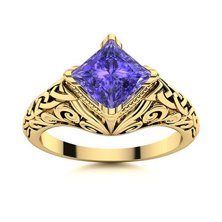 Natural 0.80 CTW Tanzanite Solitaire Ring 14K Yellow Gold