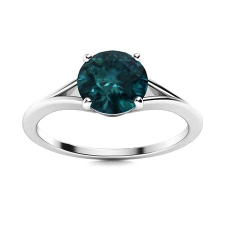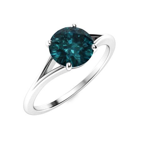Natural 0.81 CTW Blue Diamond Solitaire Ring 14K White Gold