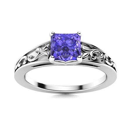 Natural 0.81 CTW Tanzanite Solitaire Ring 18K White Gold